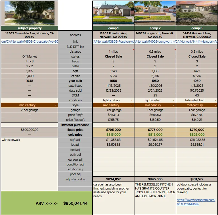 Every deal goes through a rigorous underwriting process — comps, inspections, rehab estimates, and risk review.
